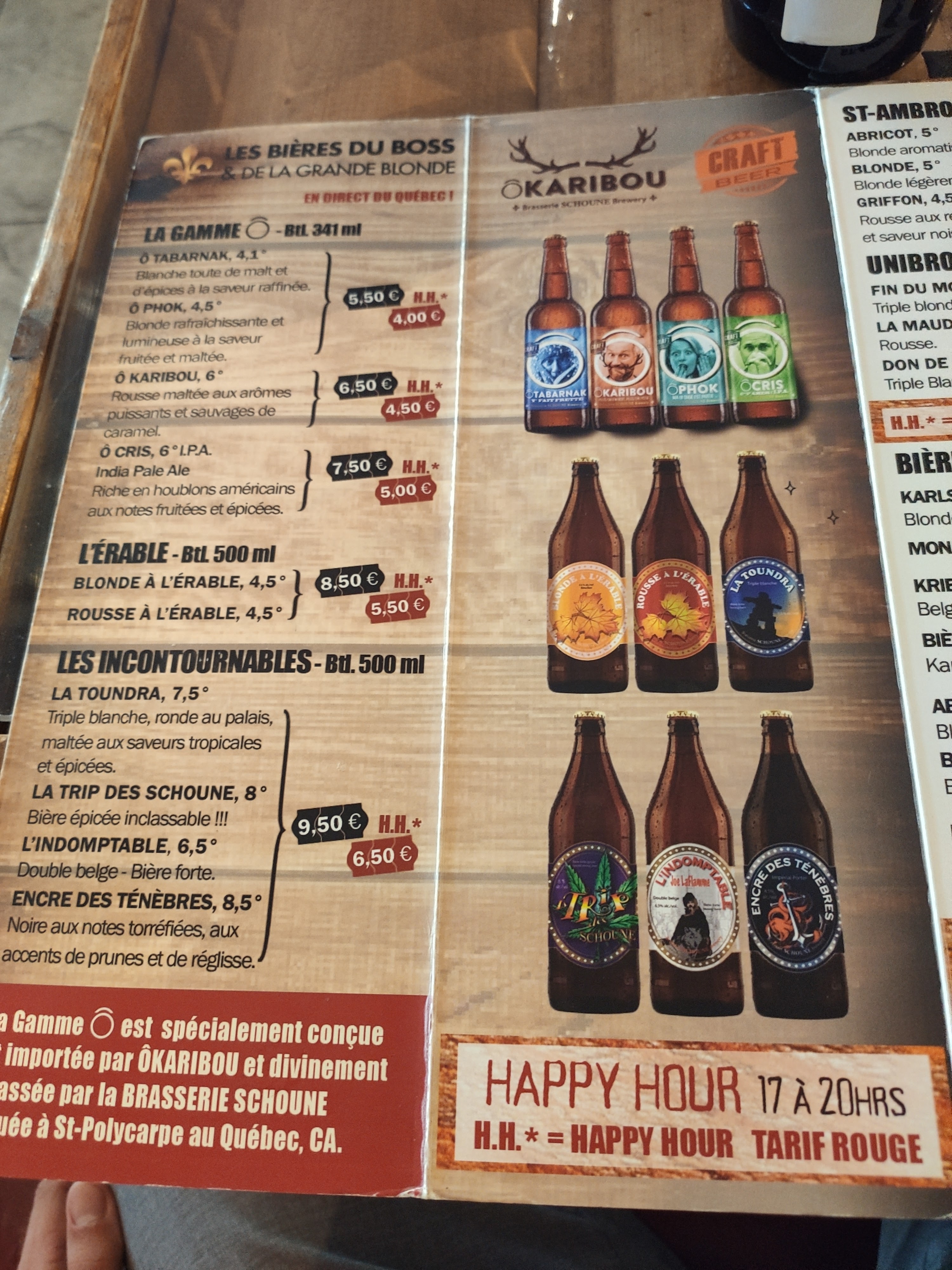Le lieu est sympa et la bière au sirop d'érable excellente mais le service n'est pas au top ou du moins pourrai être meilleur avec un peu plus de sourire et une ouverture du lieu au heure indiqué sur la devanture.