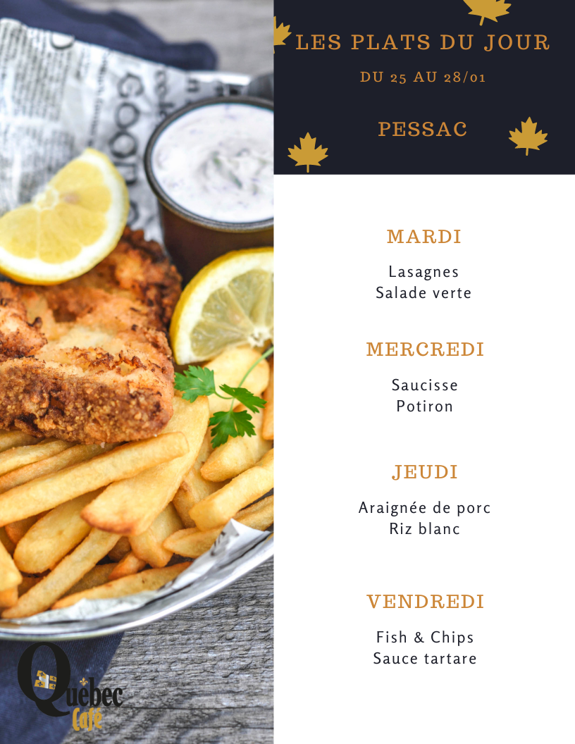 Les plat ou les menus sont très bon sa fait rappeler le Québec pour ce qui sont allez en voyage ou ce donné envie d'y aller.
