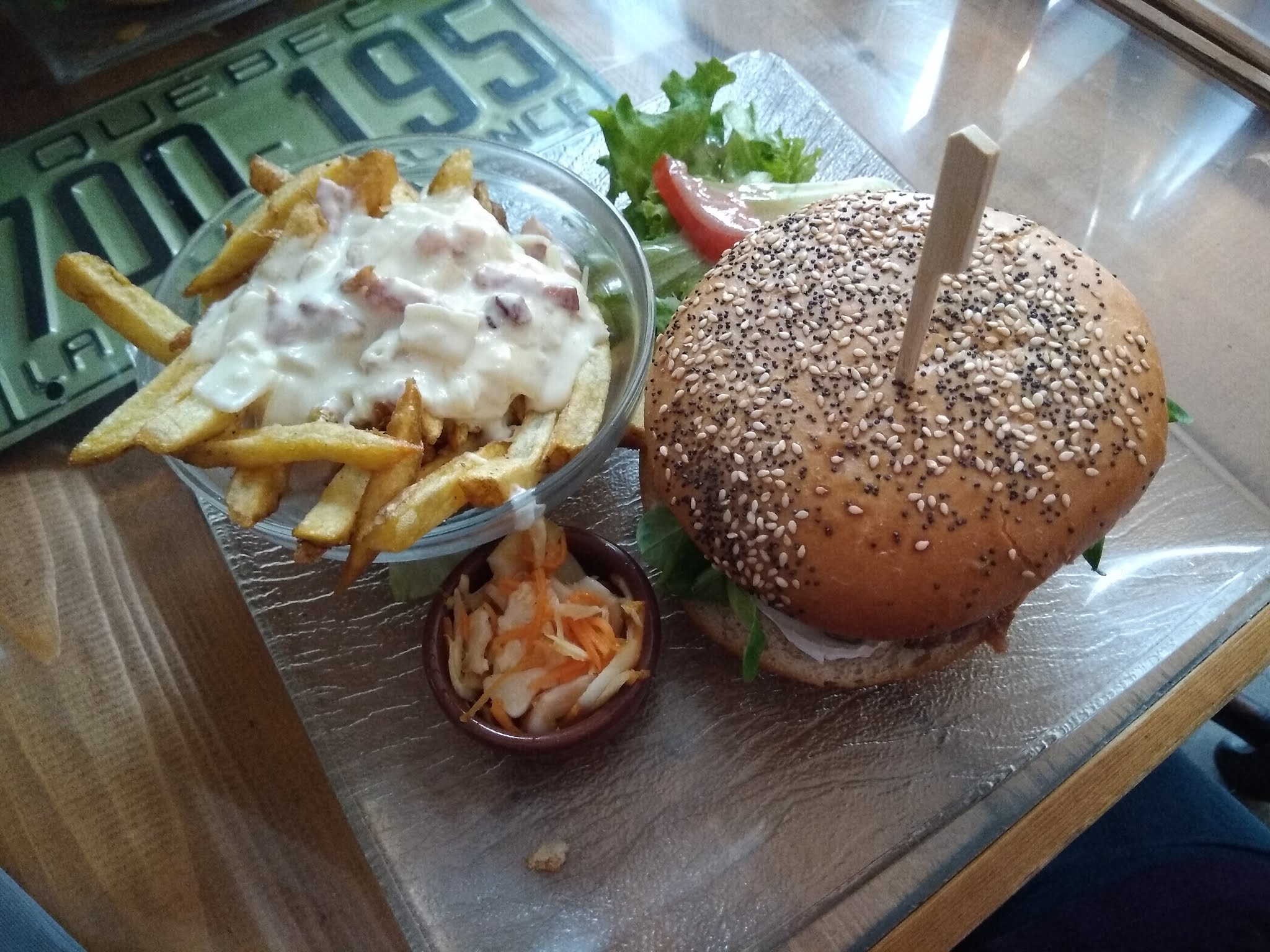 Mon dieu, que dire de cette endroit. Salle étouffante et extérieur miteux. Patron pas très aimable. Quand à leurs hamburger...pain sec, viande sans saveur... Frites maison, oui effectivement 😱. A minima saler les aliments cela apporte un peu de goût. Sauce carbonara industrielle, a peine réchauffer. Un pickles servi en accompagnement mais pour le coût, ne rien mettre serai mieux 🤮. Pas de dessert pour nous puisque que le repas était une mauvaise expérience pour nous. Enfin, mon plaisir pour terminer n'importe quel repas, le café... L'un des seul café de ma vie que je n'ai pas pu terminer. C'était du café avec un peu d'eau. J'aime les cafés bien serré mais trop c'est trop. Trop amer , imbuvable 😡 De passage dans la région ? Vite passer votre chemin. Si les aliments sont à la hauteur cela ne me dérange pas de payer le prix, mais la c'était vraiment trop cher pour ce que l'on nous a servi. Bref, une des pires expérience culinaire de ma vie 🤬🤬🤬🤬