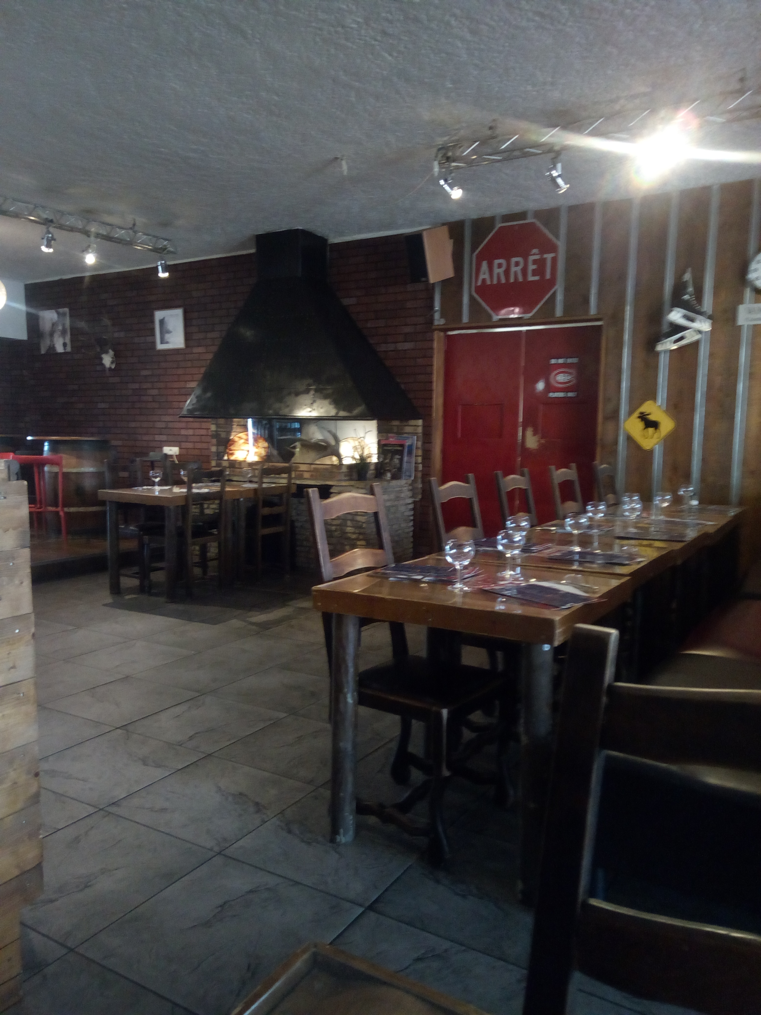 une belle décoration pour un restaurant typé québécois. une bonne table avec des plats faits maison. une très bonne poutine, et 2 tailles pour les burgers pour les grosses ou petites faims