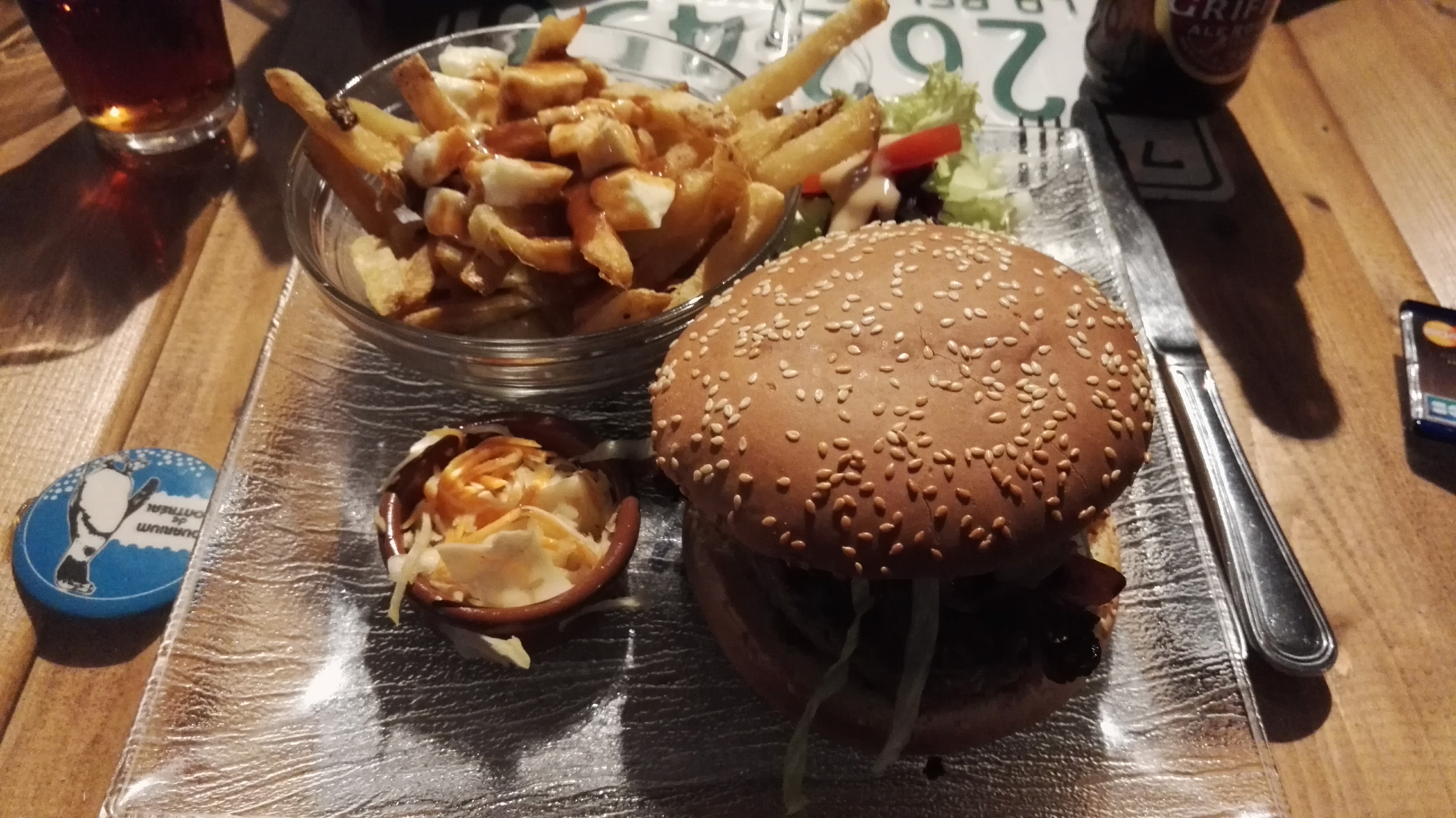 une bonne soirée, dans un resto sympa, et dans une bonne ambiance... les planches et les hamburgers sont copieux avec leur poutine, et belle découverte des bières québécoises...