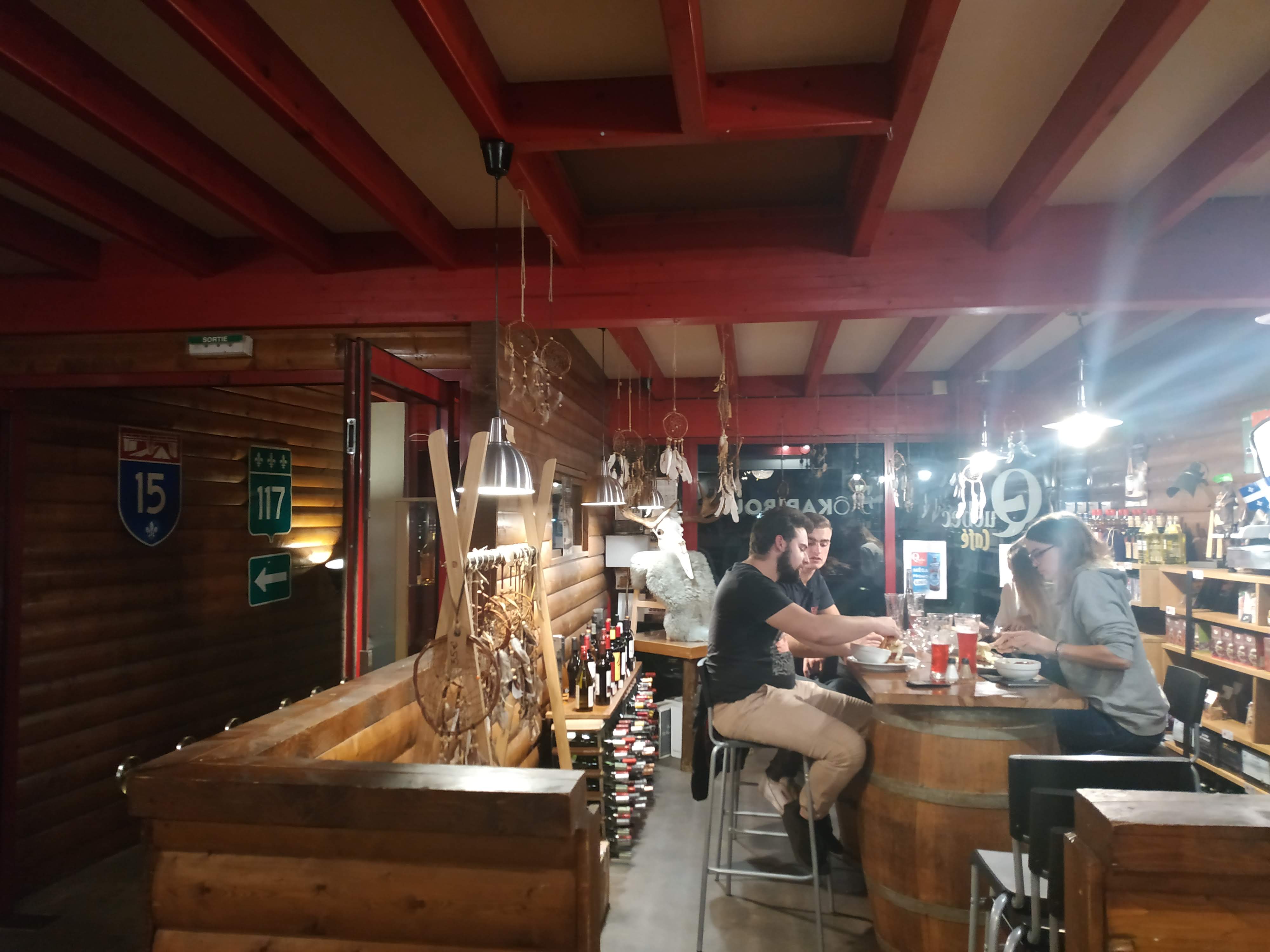 Service chaleureux. Le restaurant est très souvent complet. Je voulais absolument tester la poutine, c'est une déception, qui n'a rien à voir avec le restaurant, je pense qu'elle a le même goût là bas. Les tapas dont délicieux. Le bilan est bien gras, mais il faut bien prendre des forces avant d'aller chasser le caribou...