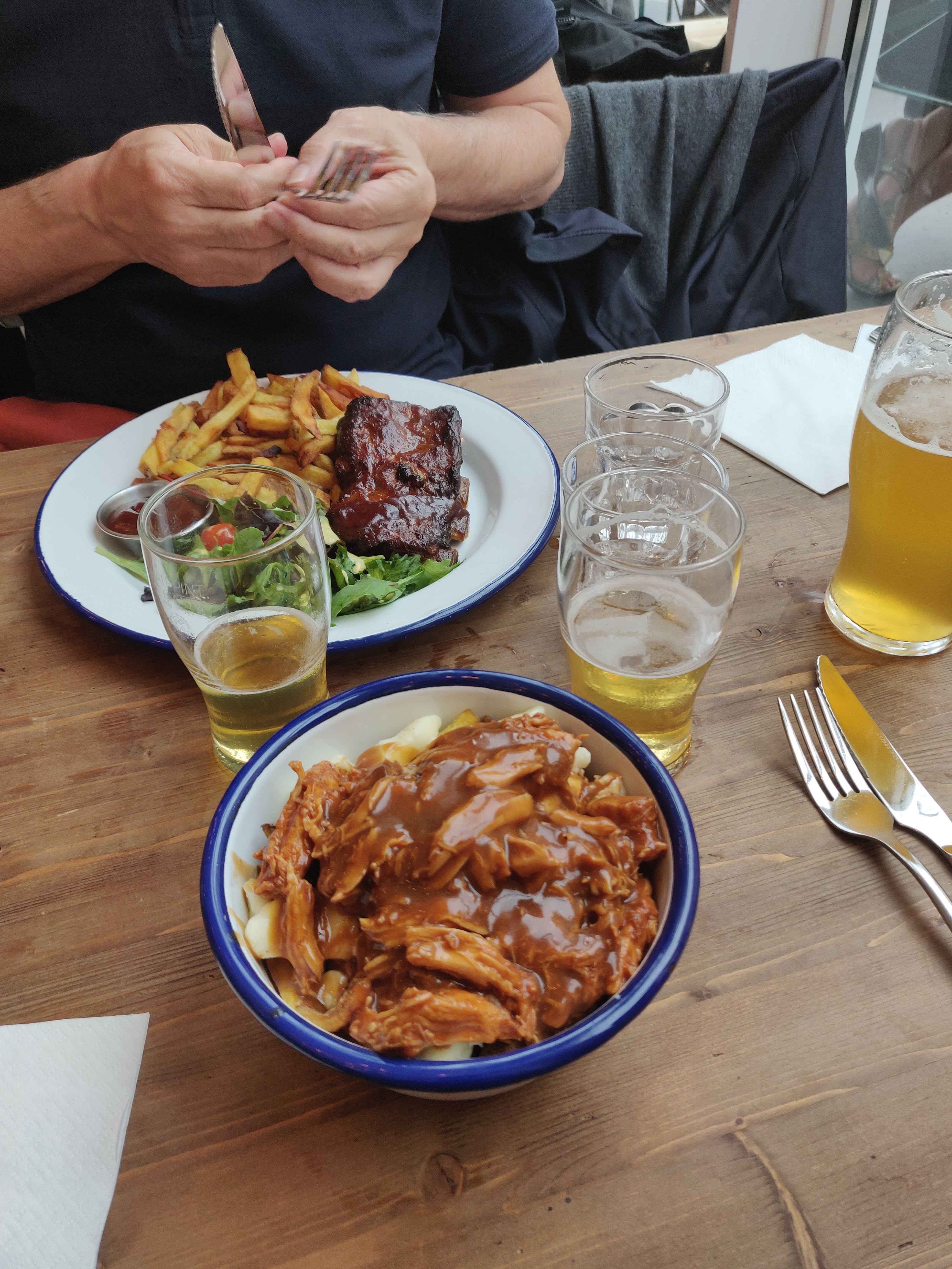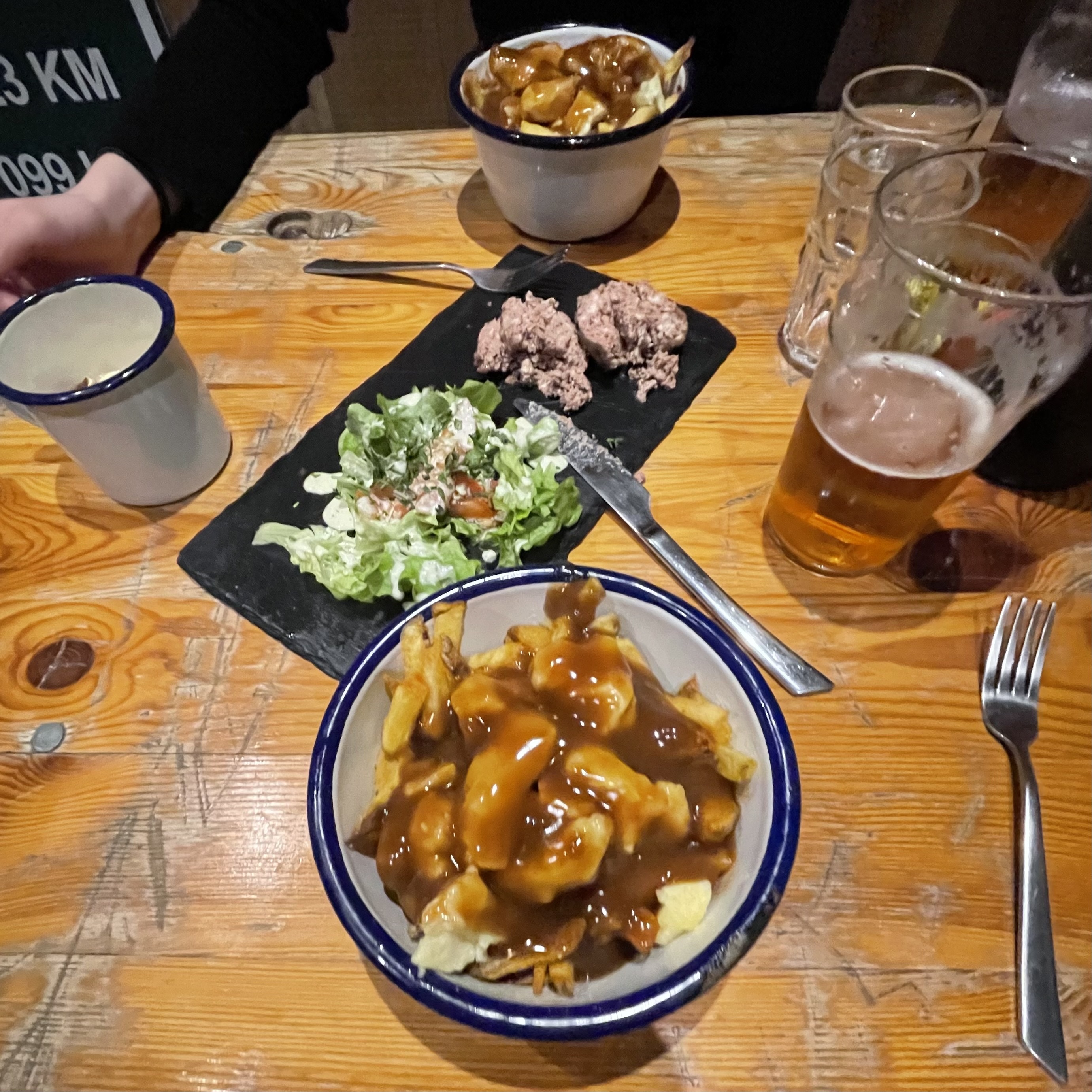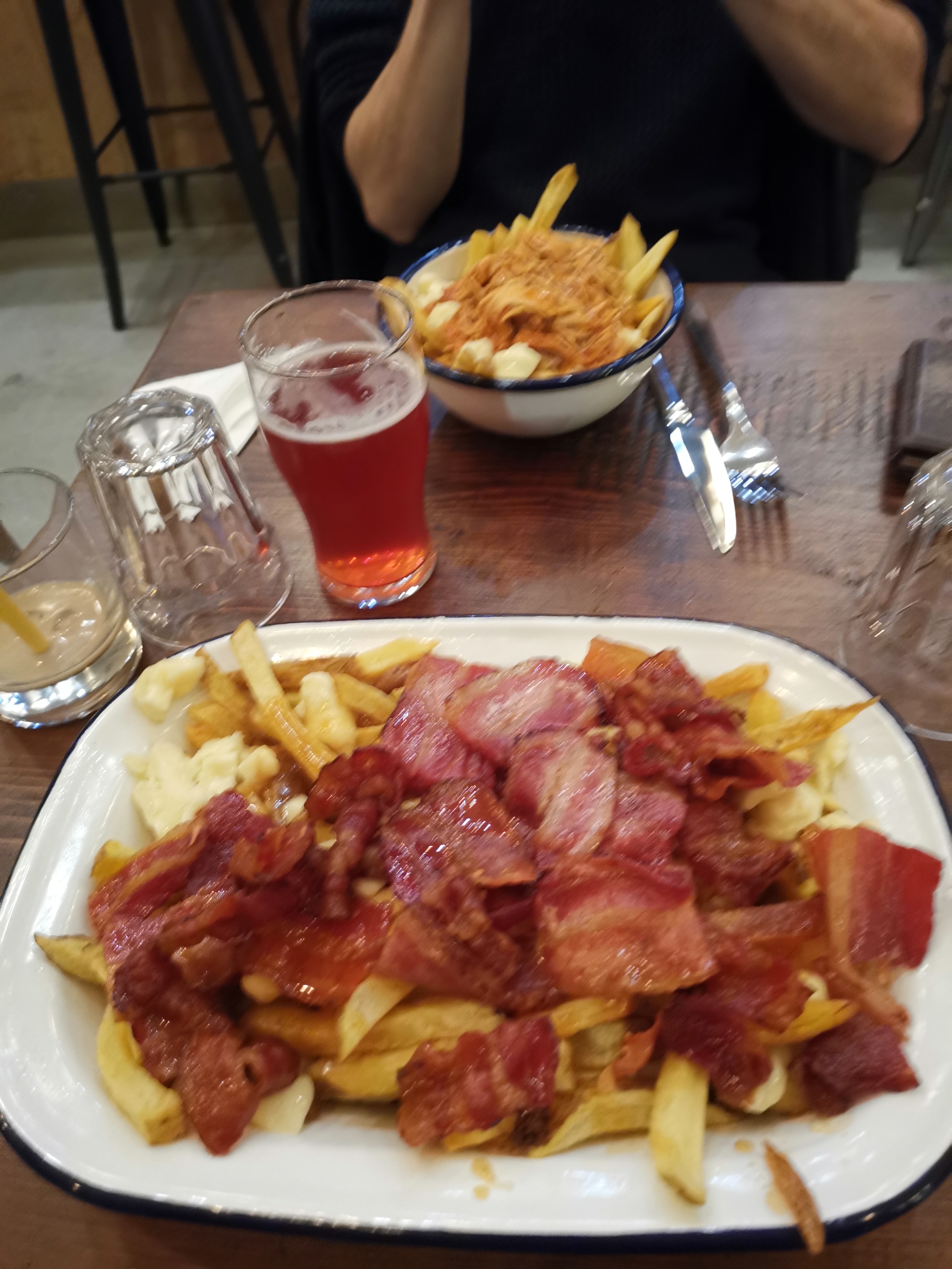 J’avais pas mangé de vraie poutine depuis mon départ du Québec pis j’ai versé une larme à la première bouchée 🥲 mention spéciale au smoked meat maison et à la bière du patron !!!