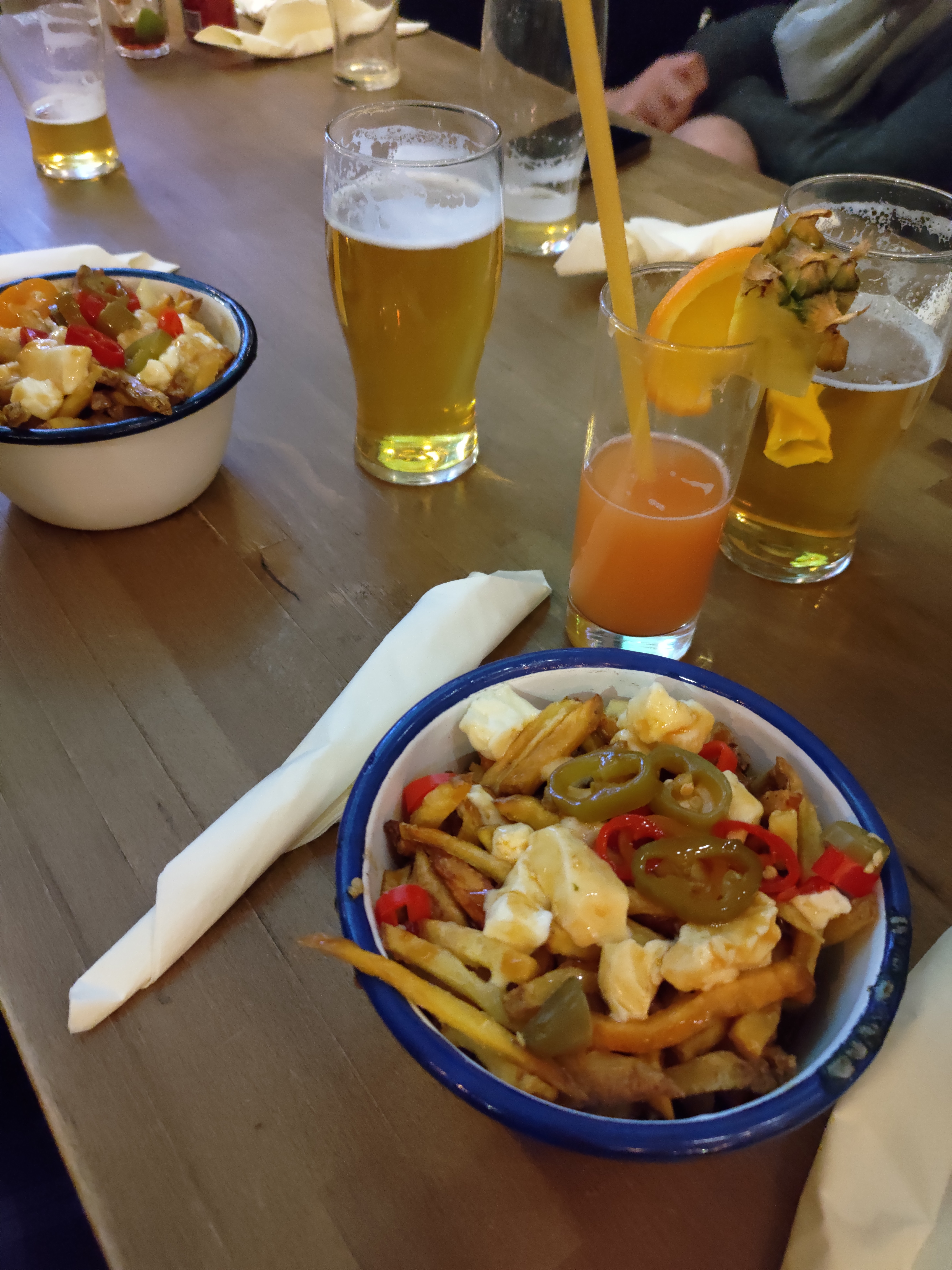 Poutines vraiment pas exceptionnelles avec des frites pas cuites. Les bières sont bonnes et pas trop chères.