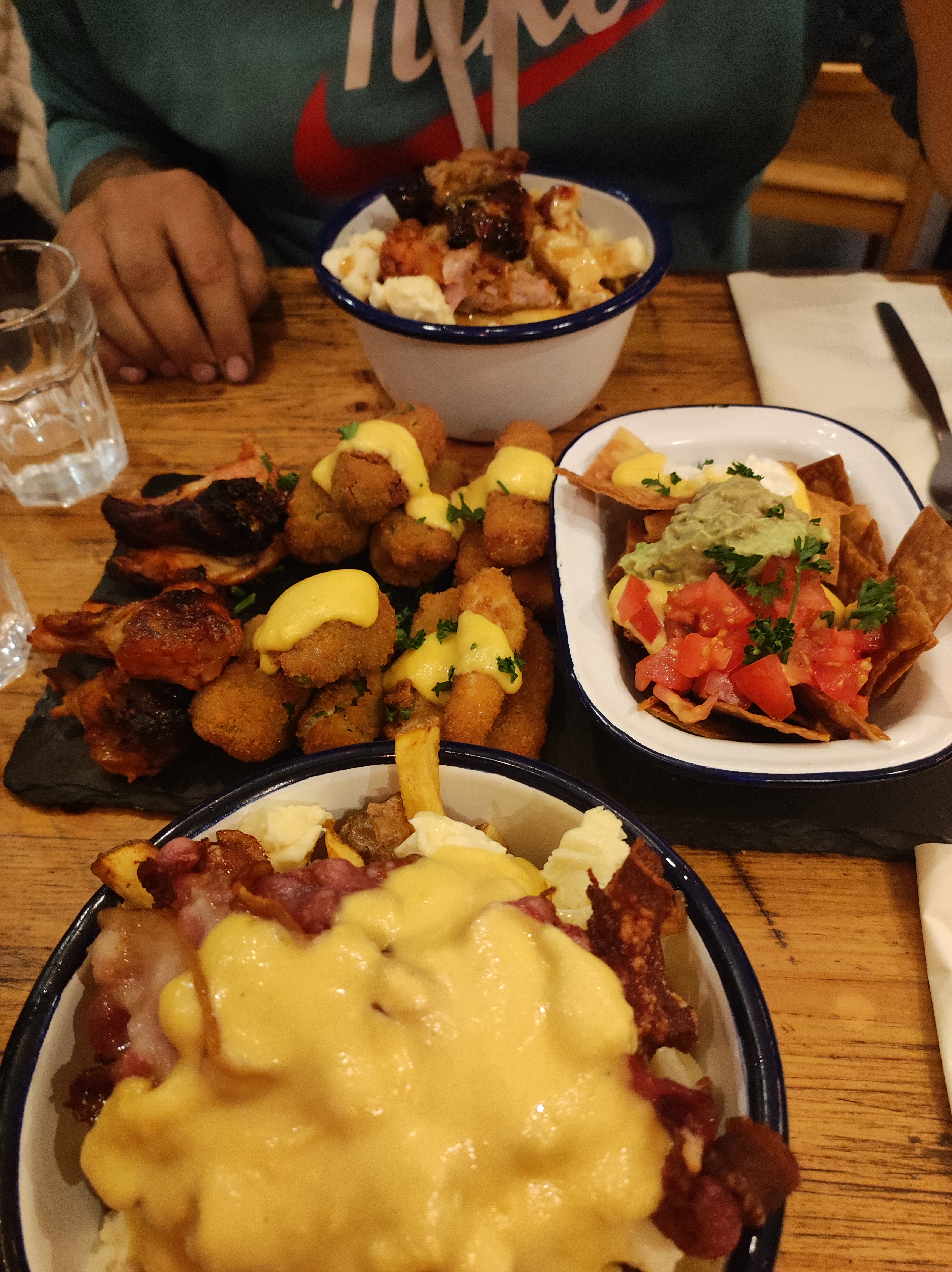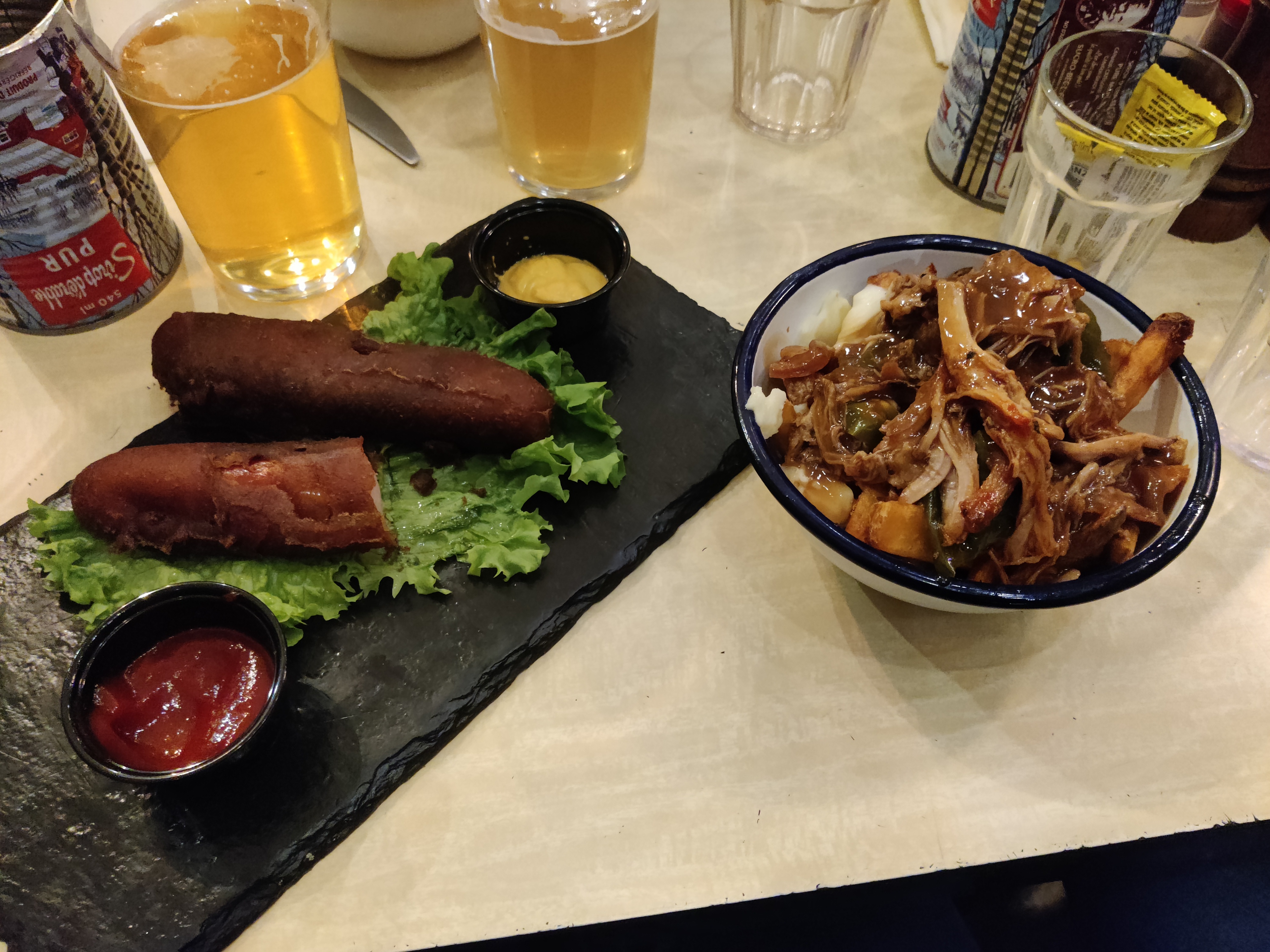 Les nachos très bon. La poutine pas trop saucée agrémentée de fromage qui ne fond pas 🤔🤔🤔😑. Travers de porc fondant, très bon. J'y retournerais mais pas pour la poutine.