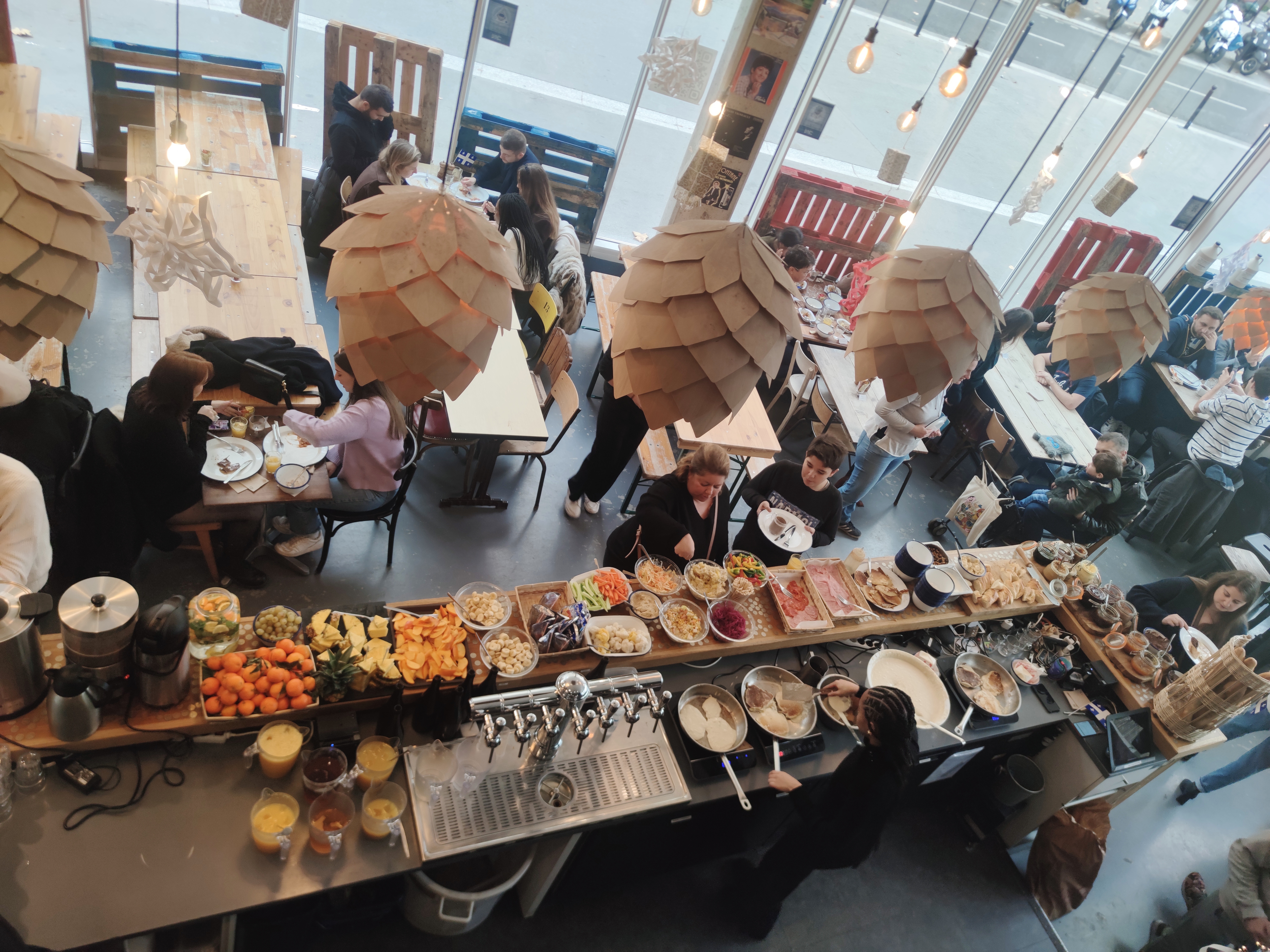 Brunch très convivial à la cuisine généreuse, dans un endroit spacieux, ce qui rend le repas très agréable ! La cuisson du bacon est top, la purée passe très bien, tout comme les œufs brouillés (je ne sais pas s’ils sont faits maison). Les pancakes étaient ok, malheureusement ils étaient victimes de leur succès et partaient un peu trop vite ! Nous sommes arrivés pour le service du 12h et le seul bémol que j’ai noté, c’est l’arrivée tardive de certains plats: pancakes, petits roulés, fromage blanc, granola, lasagne… Dommage aussi pour l’absence des fameux beignets à la pomme et du peu de choix de dessert... Mais ce n’est pas dramatique ! Le repas s’est tout de même bien passé grâce a un personnel très accueillant et à l’écoute.