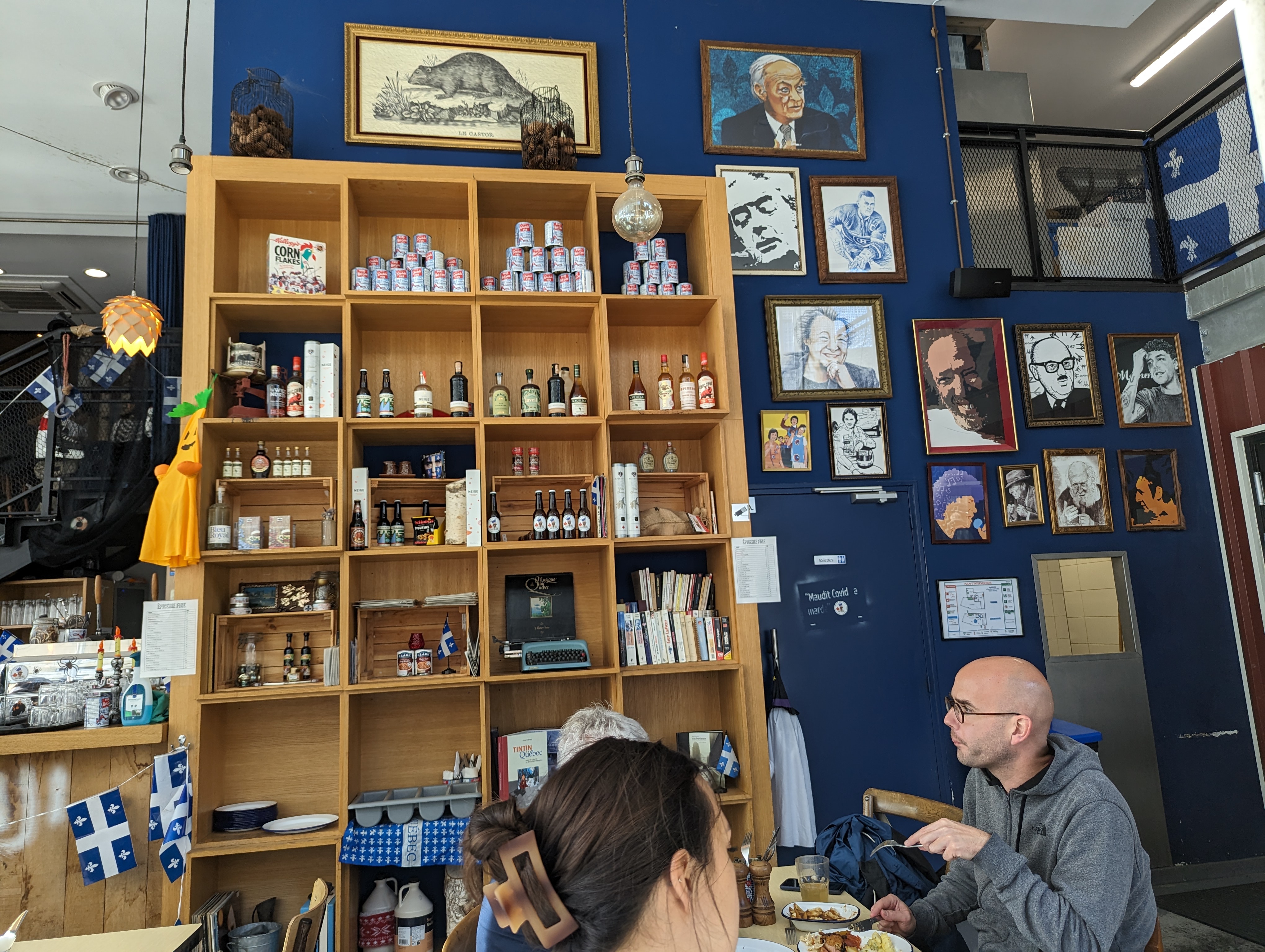 Samedi 6 avril 24. Que dire, ca manquait de Canada. Le monsieur qui nous a servit nous avoue etre cuisinier, le serveur ne c est pas pointé. Je voualis boire un café frappé, ca n a pas ete possible. Les poutines etaient pas mal mais pas folles, trop salé et j ai priq a la saucisse car il n y acait pas d émincé de porc. En dessert, on voulais un castor bite mais il n y en avais pas non plus, poyr 1 samedi midi ca fait bcp de chose qui pansie a la carte. En ce qui concerne l épicerie, elle est dans une grande bibliothèque, je n ai pas capté de suite que c etait l épicerie. A revoir, car c est pas visible de l extérieur non plus, dommage. En tt cas le cusito qui a fait le sercice, etait malgre tout tres gentil.