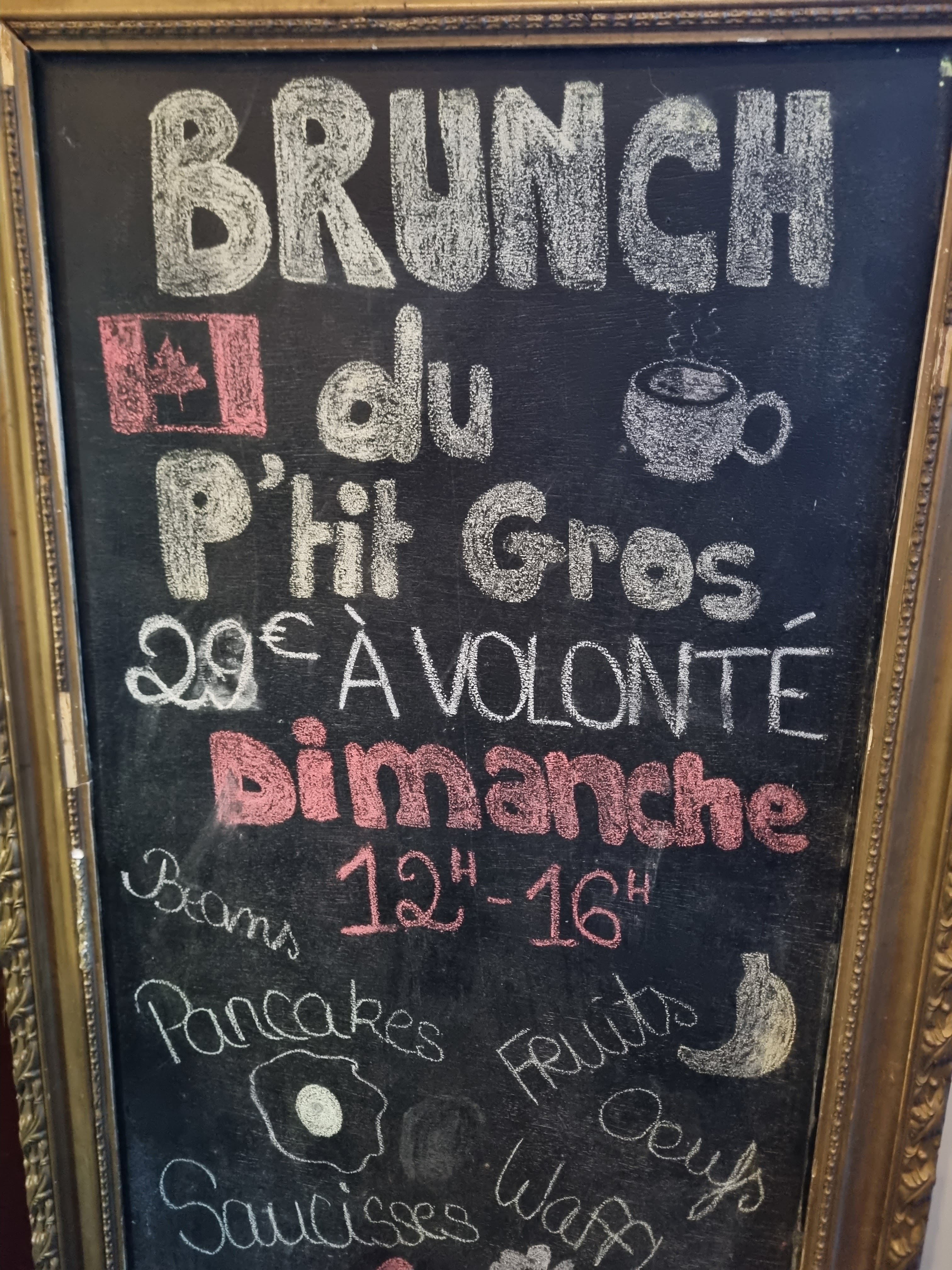 Ce dimanche, j'ai testé le brunch du p'tit gros, un vrai délice! Ce brunch à l'inspiration québécoise est complet, copieux et surtout GENEREUX. Le produits sont bons, les cuissons parfaites (œufs brouillés, bacon, pancake...). Il y en a pour toutes les envies, sucrées, salées, fruits... Les jus frais proposés sont des mélanges maison subtiles et delicieux(et le classique jus d'orange). La mini poutine appelle la mama poutine, entièrement maison est un régale, la meilleure que j'ai pu manger sur Paris. Ce brunch du p'tit gros a un goût de reviens y. Évidemment j'y retournerai les yeux fermés pour manger la mama poutine, la sauce brune est une pure douceur (le gras c'est la vie). J'adore l'ambiance, on est transporté au Québec l'espace d'un repas convival, grâce au personnel d'une très grande gentillesse et au petits soins. Merci à toute l'equipe et à très bientôt.