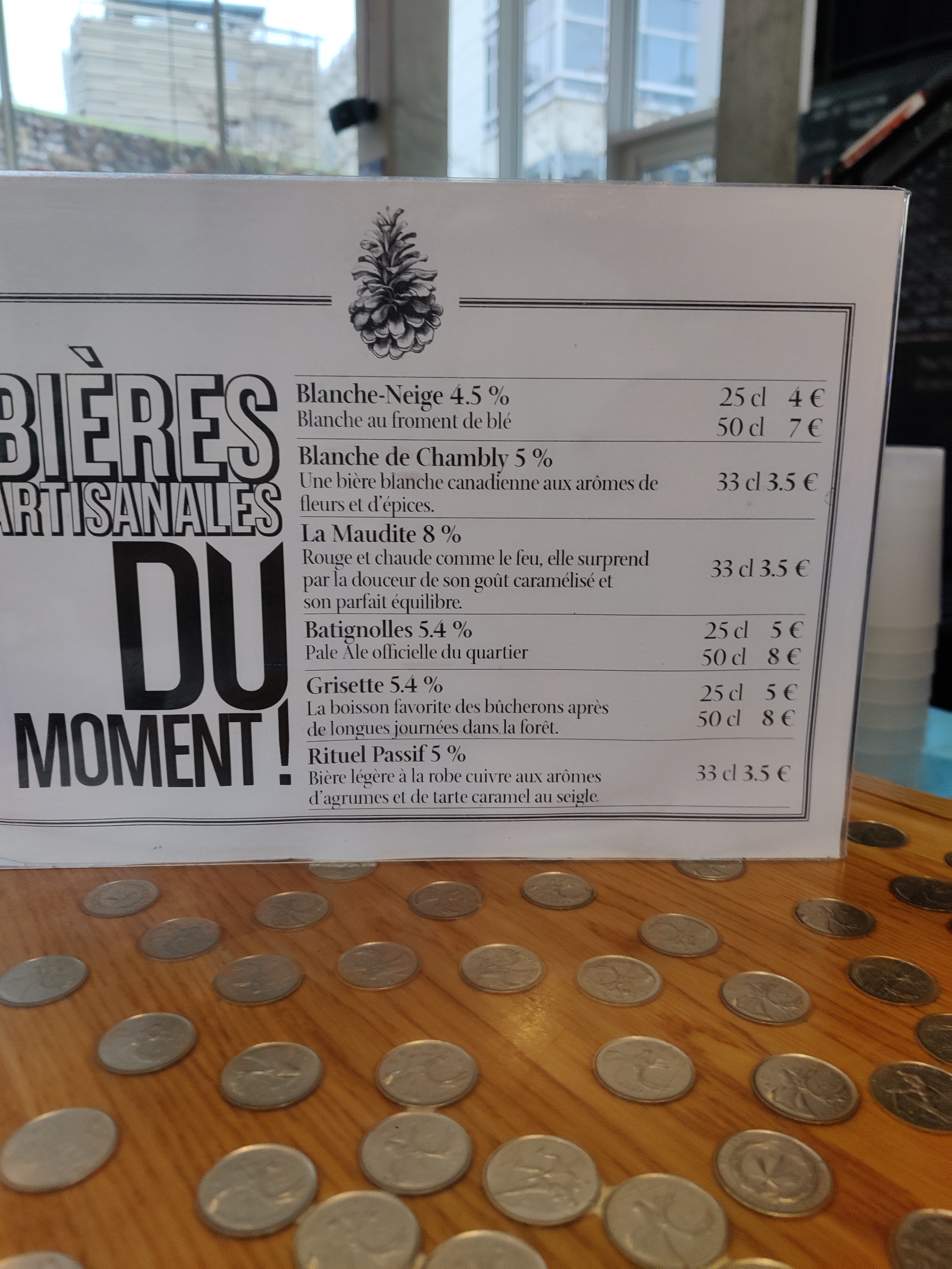 Bonjour Fred, merci pour le compliment sur la bière. On s’efforce de vous proposer des produits de choix et fait maison. Dommage pour le * 3 étoiles, peut-être que votre avis est un peu trop sévère. En effet les clients qui viennent en terrasse pour consommer doivent venir au bar pour récupérer leurs conso tout comme bcp d’endroit à Paris (Trinquet, Rosa Bonheur, Hasard Ludique, HoBa tout près du Quebecium, et pleins d’autre...). En revanche à l’intérieur vous avez un service complet de table comme dans tous les restaurants traditionnels. Nous avons une terrasse qui totalise plus de 100 places assises. Avant, nous assurions le service en terrasse et malheureusement certaines personnes nous commandaient et partaient sans payer (resto basket comme vous dites ici...) comme notre terrasse est grande. C’est pas très sympa vu la conjoncture actuelle et ça nous a obligé d’appliquer cette politique. En revanche si vous commandez à manger, évidemment que l’on vous sert à votre table même en terrasse ! Nos clients ont tous bien compris et on eu la gentillesse de s’adapter c’est pour cela qu’ils nous laissent tous 5 étoiles, ils vivent ici l’expérience québécoise avec nos bières brassées pas le patron, nos plats du terroir 100% fait maison et l’ensemble de l’équipe qui font le max pour vous faire voyager tout en restant à Paris. La prochaine fois, si ça vous pose problème, venez me voir on vous trouvera une belle table à l’intérieur et vous pourrez profiter du service aux tables. Aussi, le fait de venir au bar quand vous êtes en terrasse vous donne l’occasion d’être au plus près notre deco typiquement québécoise. J’espère que ce mot vous fera changer d’avis. Bien à vous Benjamin (celui qui a brassé la bière que vous avez bu)