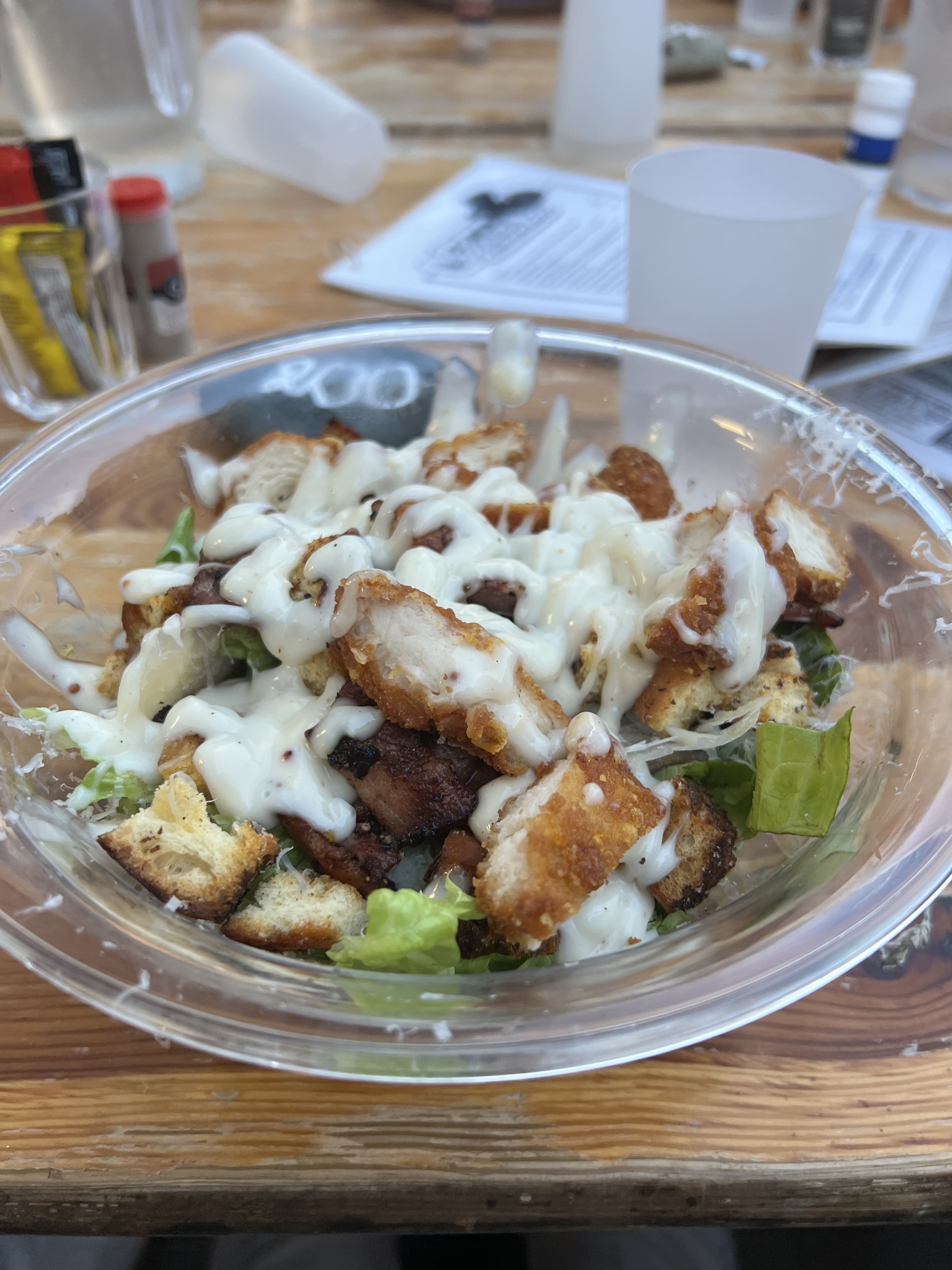 Une belle surprise tout près de mon hotel ! Ce soir c'était une superbe salade d'automne copieuse et savoureuse avec une pinte de bière locale ! Parfait !